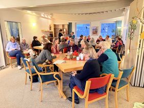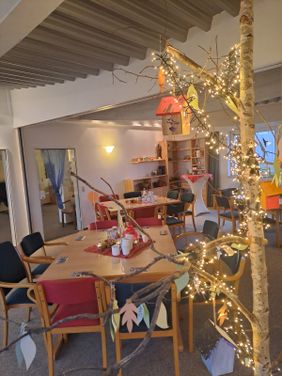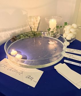 Am 27. November wurde in den vertrauten Räumlichkeiten eine bewegende Abschiedsfeier begangen. Rund 35 Gäste, darunter zahlreiche ehrenamtliche Trauer- und Sterbebegleiterinnen/-begleiter, kamen zusammen, um die gemeinsamen Jahre zu würdigen und Erinnerungen zu teilen. Die Feier wurde durch eine Lesung von Dorothee Peter aus ihrem Buch „ESSENZEN – Auf dem Weg zwischen Krise und Kraft“ bereichert. Zum Abschluss sang Dorothee Peter das Lied „Krieger des Lichts“ von Silbermond, musikalisch begleitet von Angelika und Bernhard auf dem Hackbrett.
