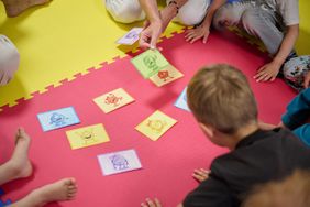 Die Gruppe spricht über Abschiede von Freunden, die in die Schule gekommen sind. Von der besten Freundin, die weggezogen ist, Abschied von Kuscheltieren und Haustieren. Karin Budde erklärt: „Wenn man Abschied nimmt, dann ist man nicht nur traurig. Da darf man auch fröhlich sein oder wütend.“ Sie fragt die Kinder: „Was hilft euch bei Abschieden?“